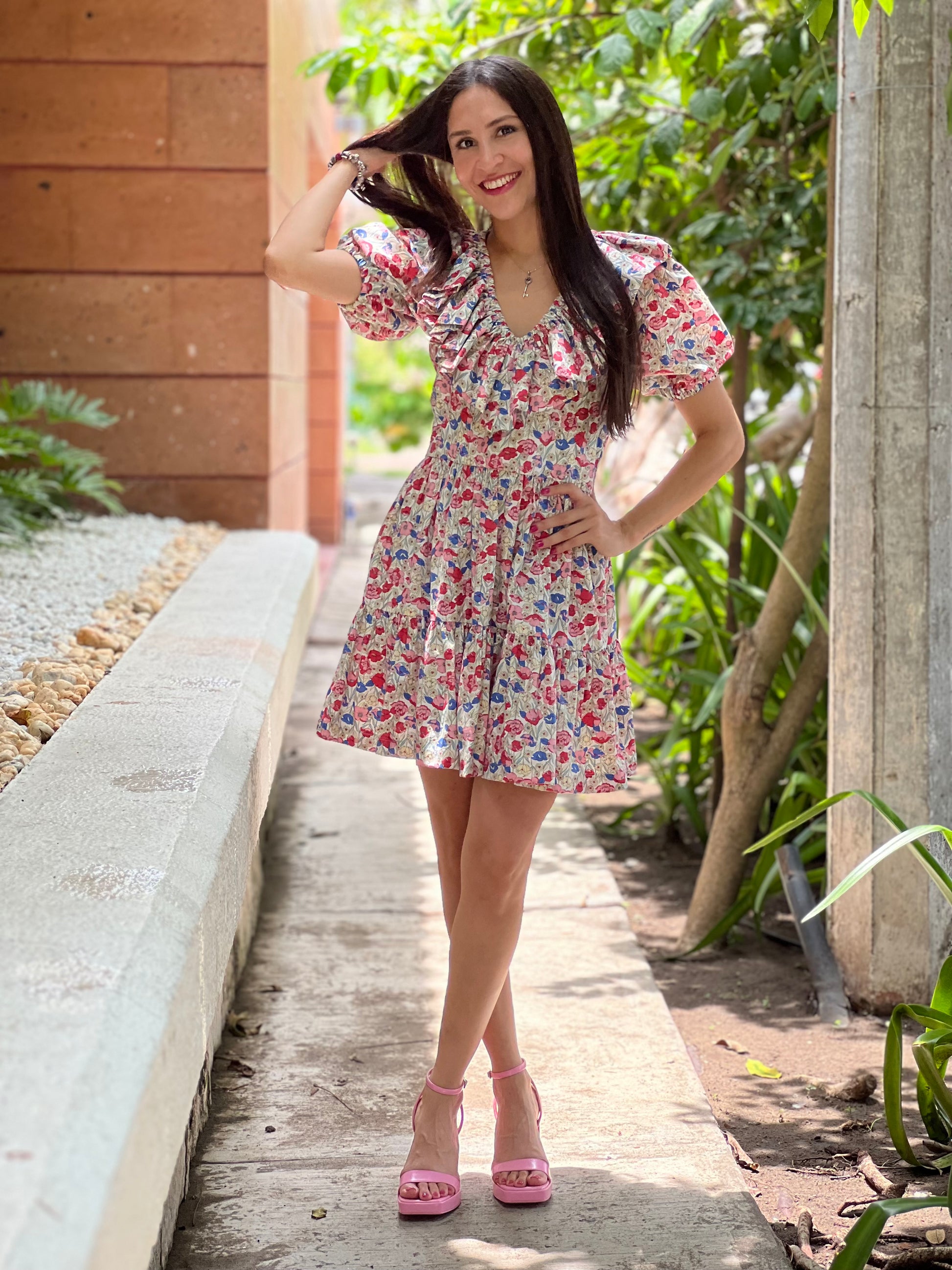 Mini vestido estampado de flores elaborado en algodón americano premium.