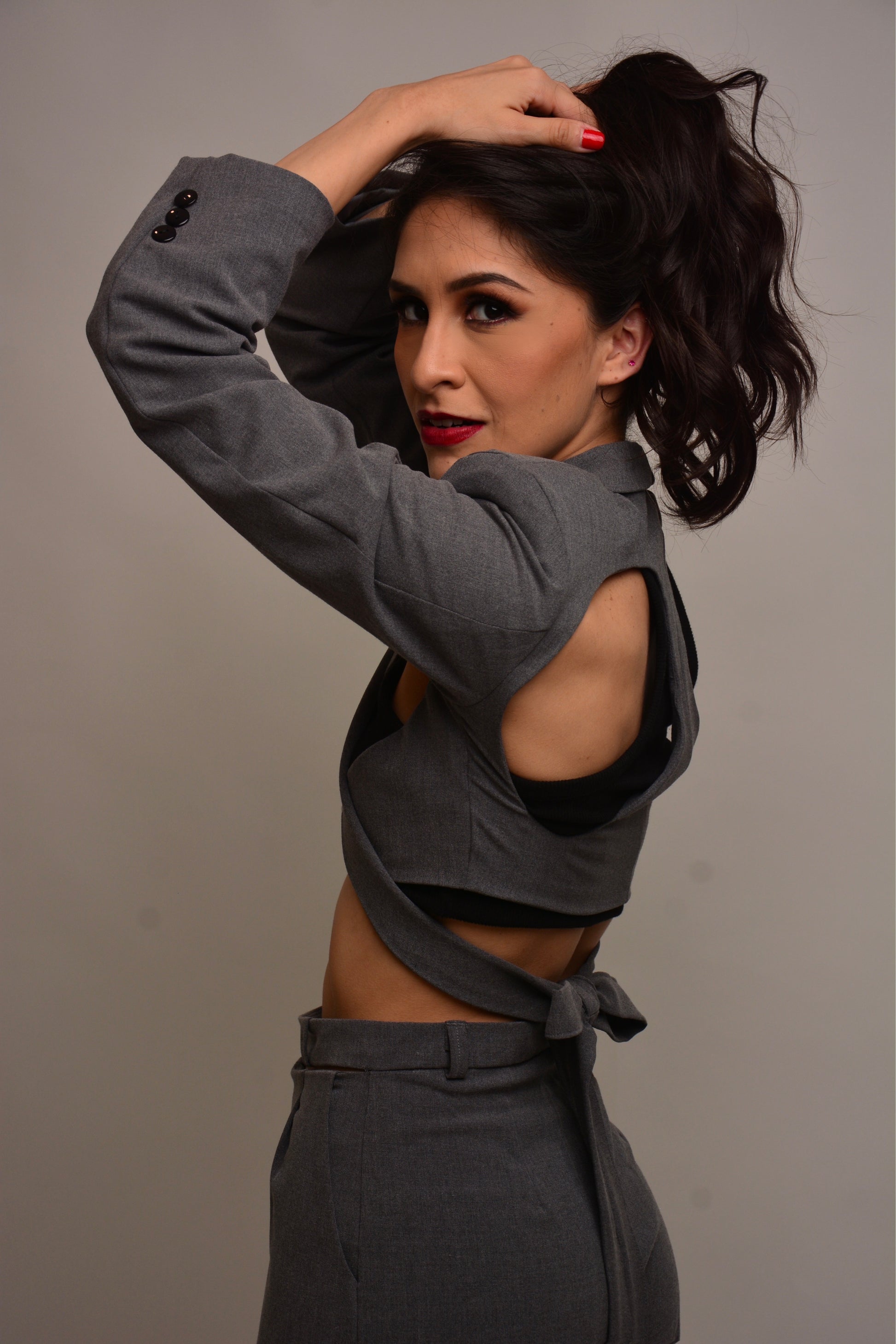 Pantalón de pierna suelta con pretina independiente en la parte delantera.